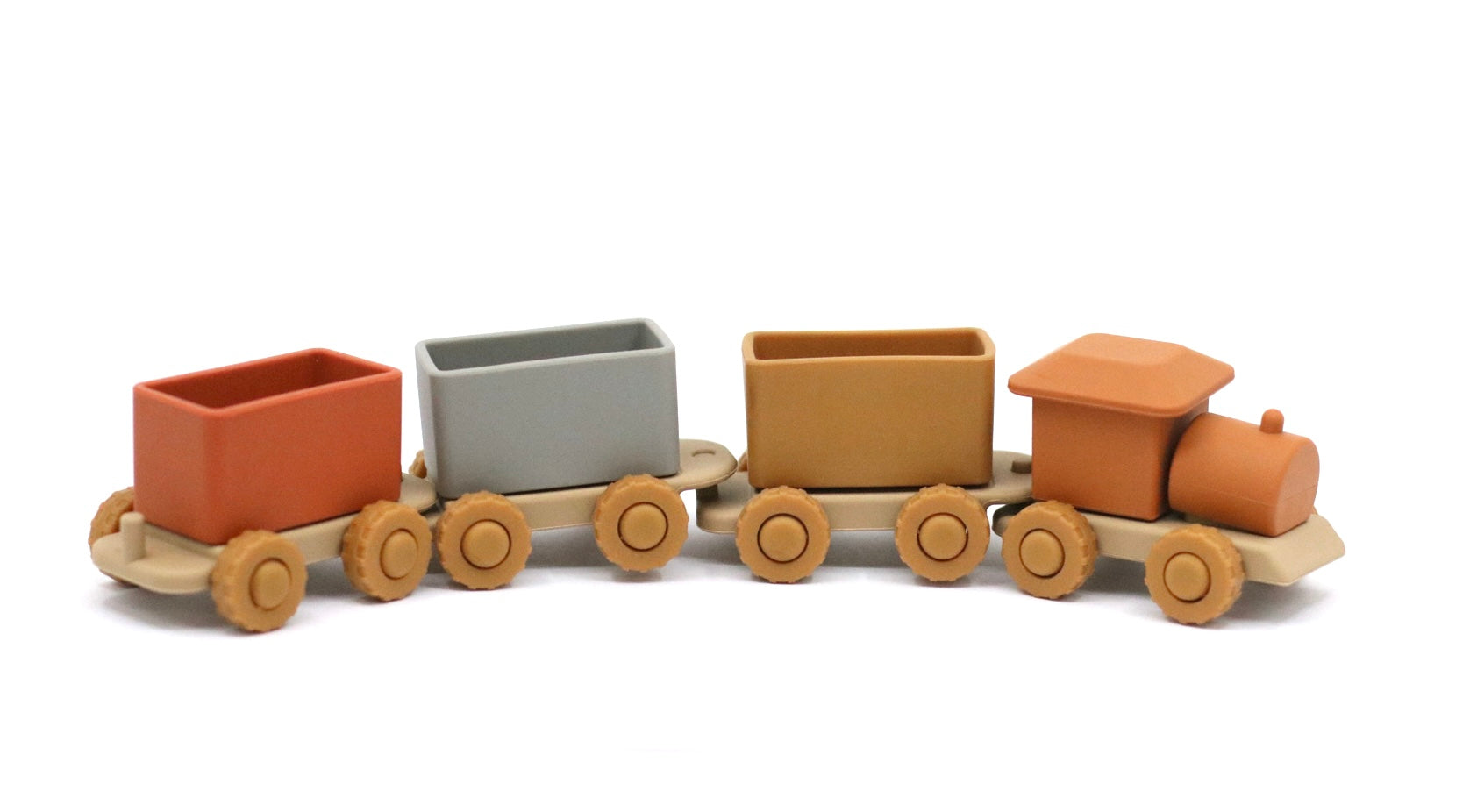 Our Silicone Train Set - the perfect companion for your little one's early adventures. Crafted with care from safe, soft silicone, these toys are designed to stimulate sensory development and fine motor skills.